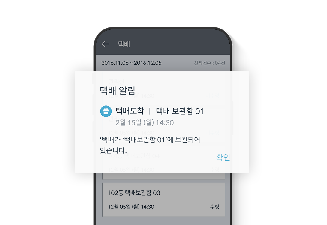 The system is connected with various common facilities of the complex so it can inform you via your Smartphone of parcels or vehicles that have arrived.