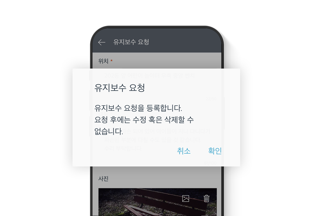 You can submit any failure of your facility conveniently and directly to maintenance office through your Smartphone.